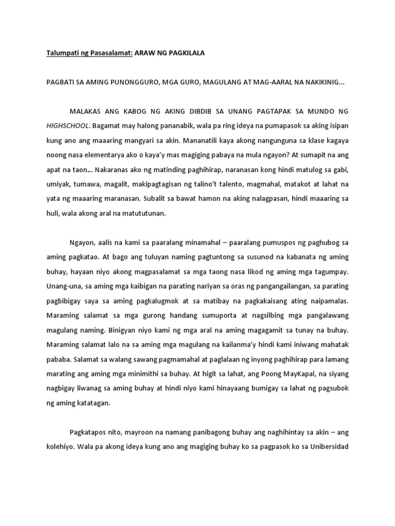 5 Talumpati 1 Araw Ng Pagkilala Pdf